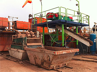 3)廢漿處理離心機處理完的鉆井液用儲漿罐收集起來或者回歸到固控系統罐中循環使用。