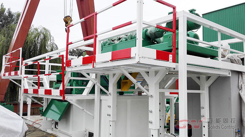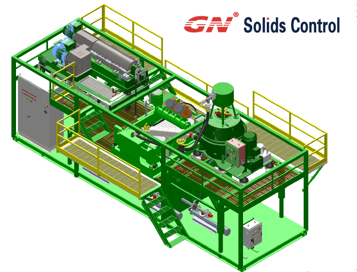 這個中石化項目打包配置了一整套水基泥漿廢漿處理系統,包括鉆屑甩干機,高G干燥篩和變頻離心機。廢棄鉆井泥漿 先輸送到鉆屑甩干機或高G干燥篩從而得到干燥后的鉆屑,變頻離心機將處理余下鉆井液,并將處理好的清潔的鉆井液返回到泥漿罐。
