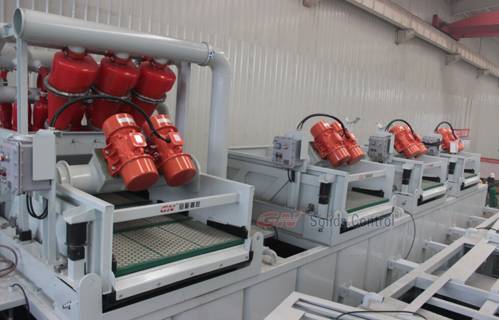 1)3臺(tái)500gpm處理量的振動(dòng)篩,型號(hào)為:gnzs703e-dz,總處理量為1500gpm2)1臺(tái)處理量為1500gpm的泥漿清潔器,型號(hào)為:gnzj703e-3s16n