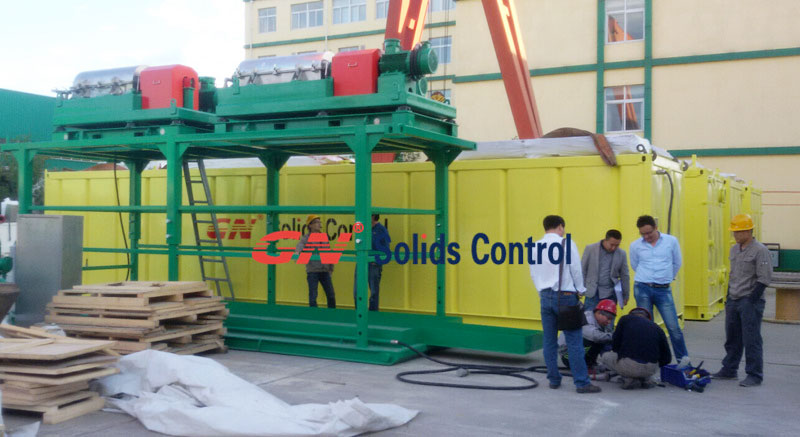 3、2臺(tái)變頻GNLW452-VFD泥漿離心機(jī),2個(gè)20尺集裝箱大型的泥漿罐。